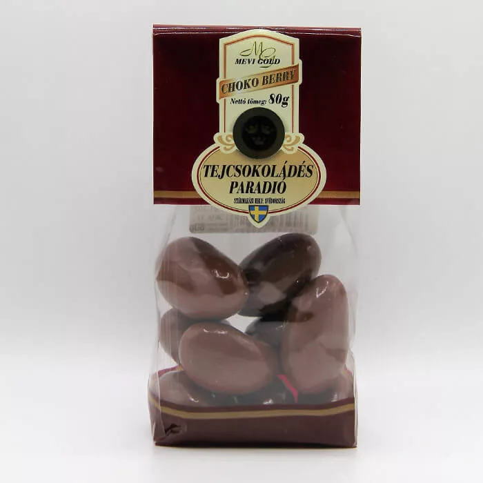 Tejcsokoládéval(76%)bevont paradió (23%)