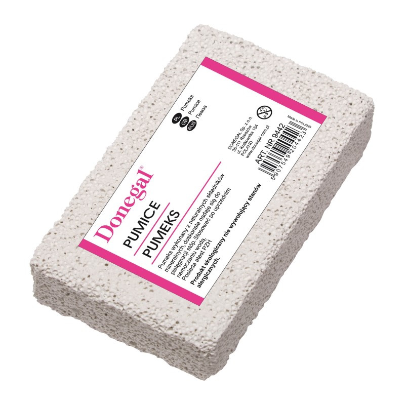 DONEGAL ®, Természetes alapanyagú habkő mely hatékonyan eltávolítja a bőrkeményedést és az elhalt szaruréteget a kezeken és a lábakon. Antiallergén. Méret: 8 x 4,5 x 2 cm.
