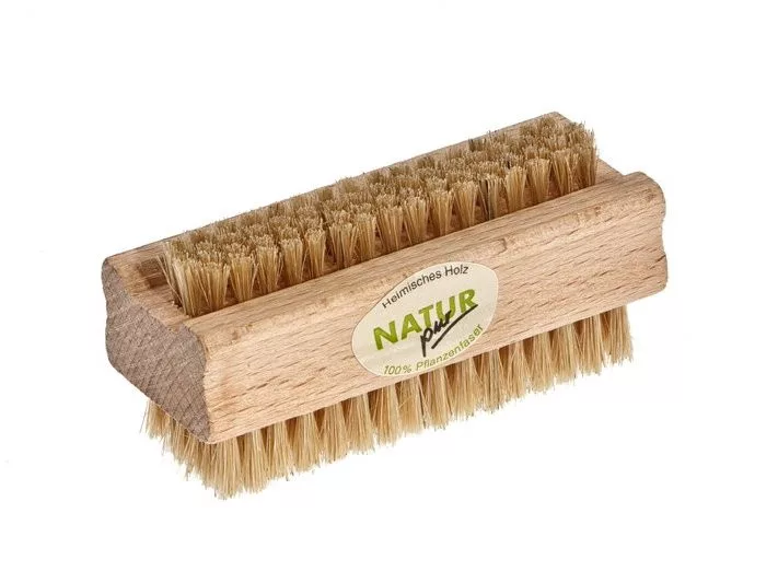 Kétoldalú körömkefe, alaposan tisztít és ápol. Csak természetes, jó minőségű anyagokat tartalmaz, így kevésbé terheli a környezetet, illetve sokkal tartósabb, mint a műanyag körömkefék. Ruhatisztításra is alkalmas.